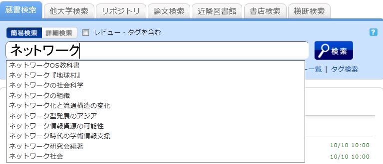 表示された候補からひとつを選択して[検索]ボタンを押すと検索を開始します。