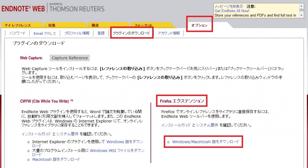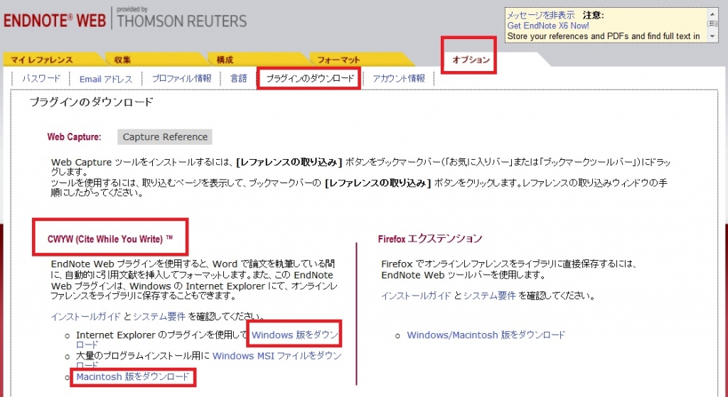 - お使いのブラウザがInternet ExploreやSafariの場合、CWYW (Cite While You Write)からお使いのパソコンのOSによって、「Windows版をダンロード」または「Macintosh版をダウンロード」を選択して、プラグインをダウンロードします。