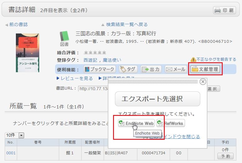 - OPACからEndNote Webへ文献情報を直接取り込み(ダイレクト・インポート)する方法
