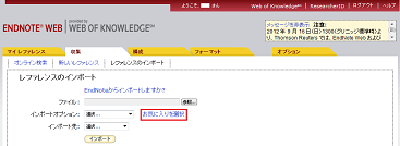 - OPACからRefWrksへの文献情報の取り込み(インポート)は以下の画面で可能です。