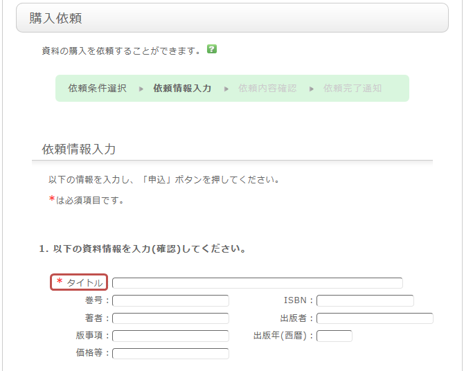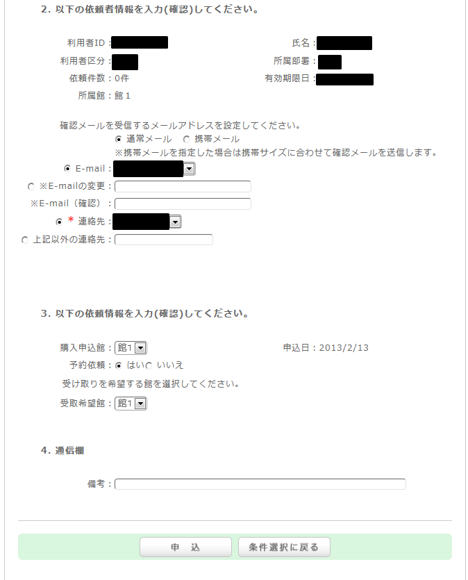 3.購入申込館や予約の有無等を選択し、備考を入力します。