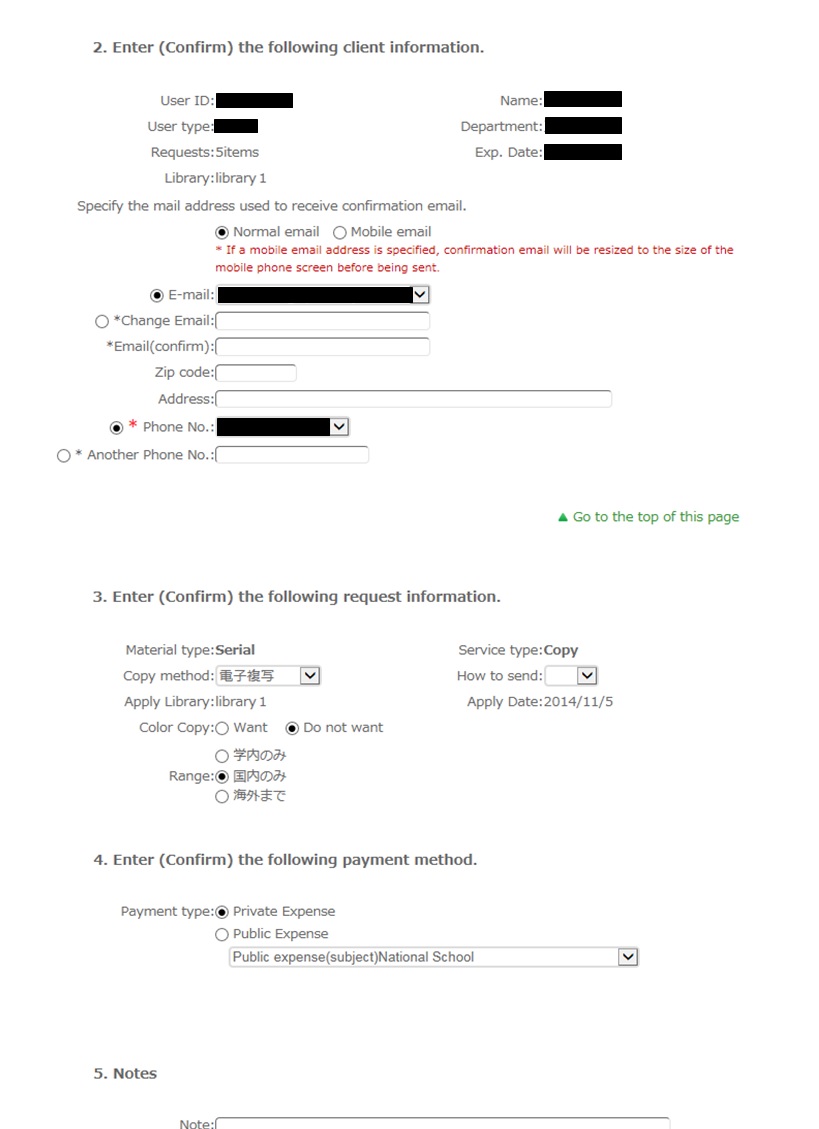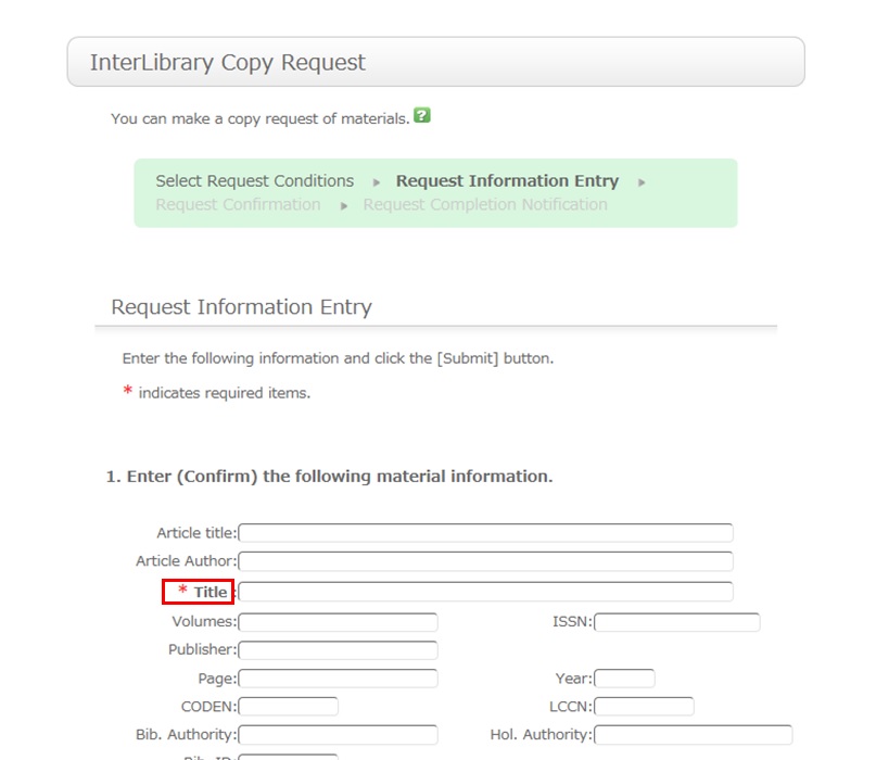 For the information about your request, write the following information: copying method, delivery method, and receiving library.