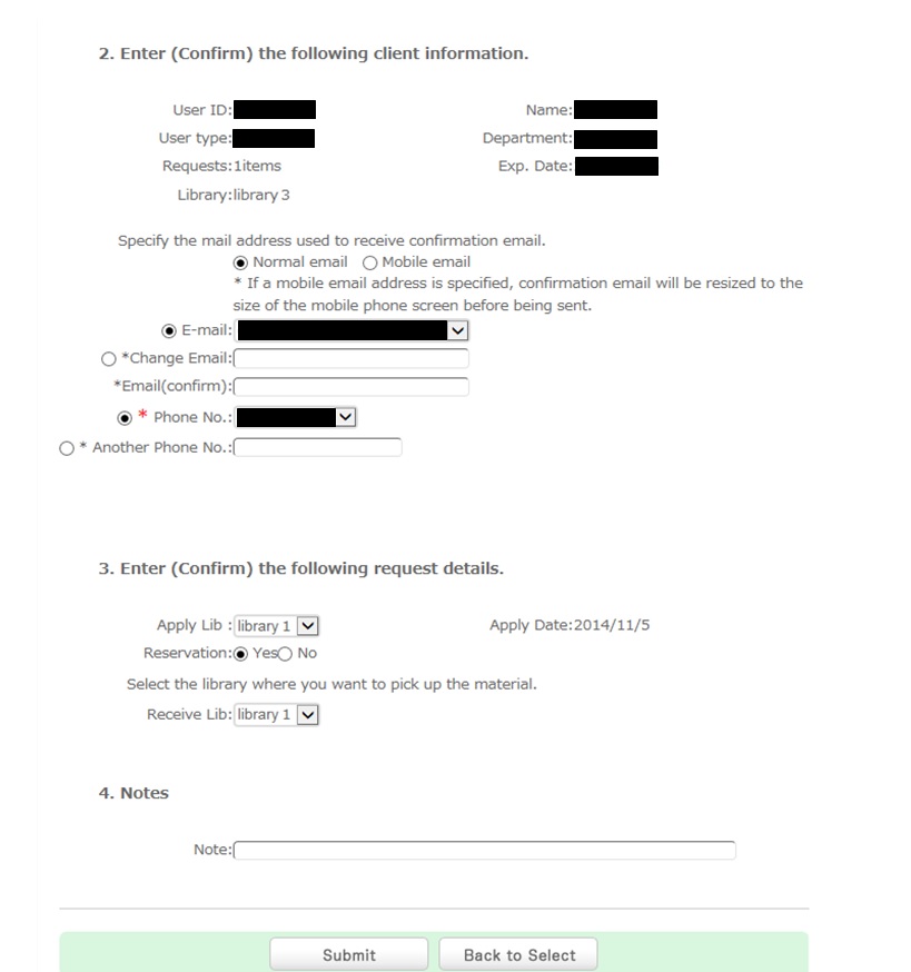 Once you have entered the above details, click the [Submit] button, and confirm the details on the confirmation screen.