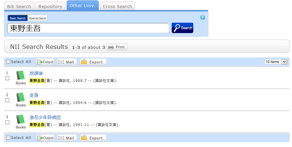 - Cross Search: Materials in the possession of national universities, the National Diet Library, bookstores, etc.