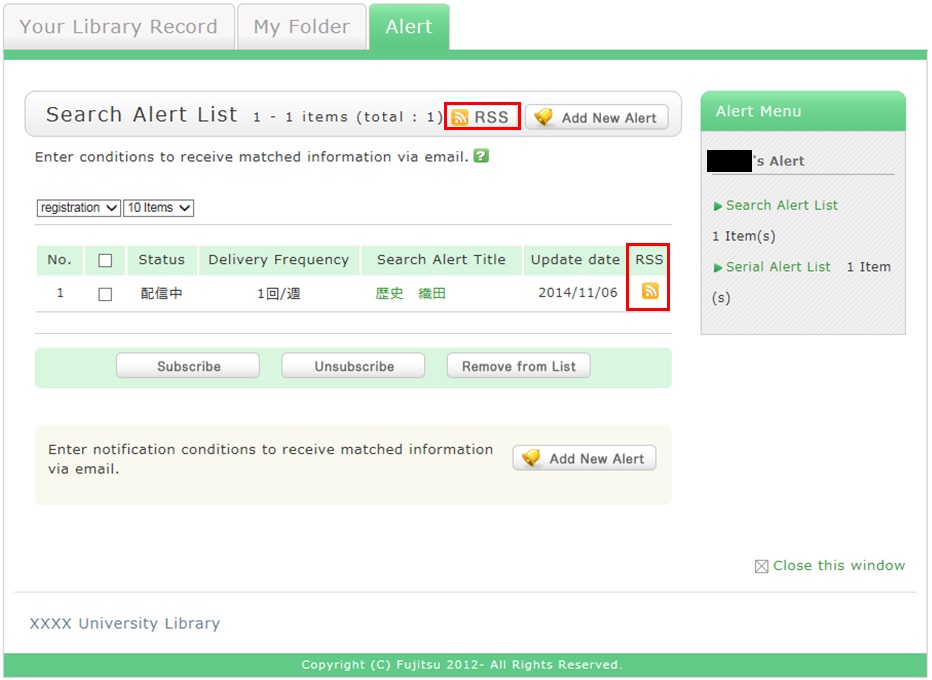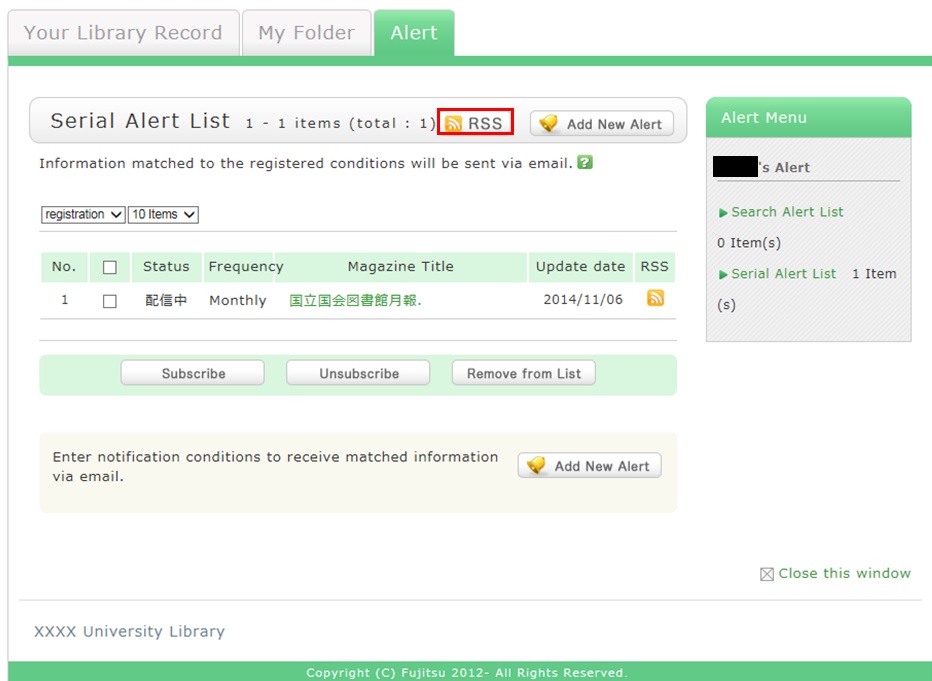 The pop-up screen is used for all applications from OPAC, such as for a reservation, ILL, or new arrival alert. Therefore, enable pop-ups by using the following method. (The descriptions apply to Internet Explorer 9.)
