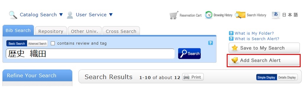 Searches can use the original spelling (with characters as they appear in materials). Searches can also use keywords converted into Roman alphabet letters using the ALA-LC Romanization Tables of the U.S. Library of Congress. Some materials are registered in Roman alphabet letters only. An index is created for them. So if the search has no hits with the original spelling, convert the keywords into Roman alphabet letters, and perform the search again.